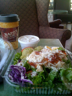 Spinach, green leaf, bacon, cheese, lemon juice, olive oil.