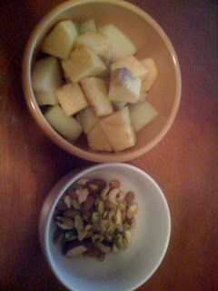 Spinach, green leaf, bacon, cheese, lemon juice, olive oil.